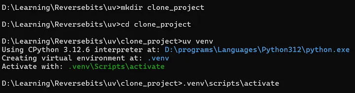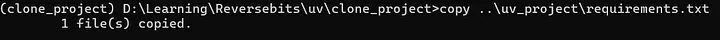 Create another folder name cloned_project where we created uv_project and repeat the steps of creating virtual environment.