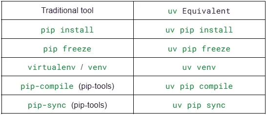 You don’t need to change your habits — just prefix pip commands with uv, and you’re good to go.