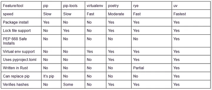 uv is designed to be a seamless replacement for multiple existing Python tools: